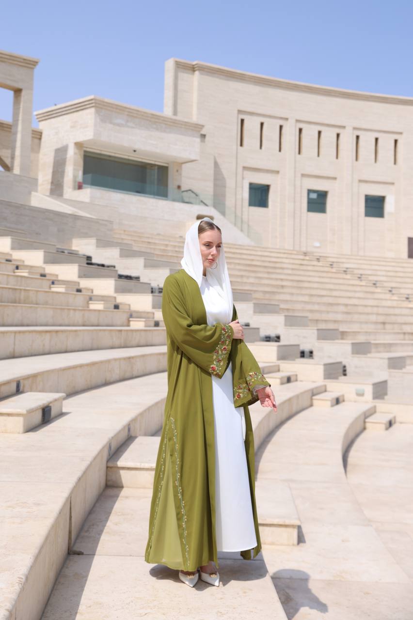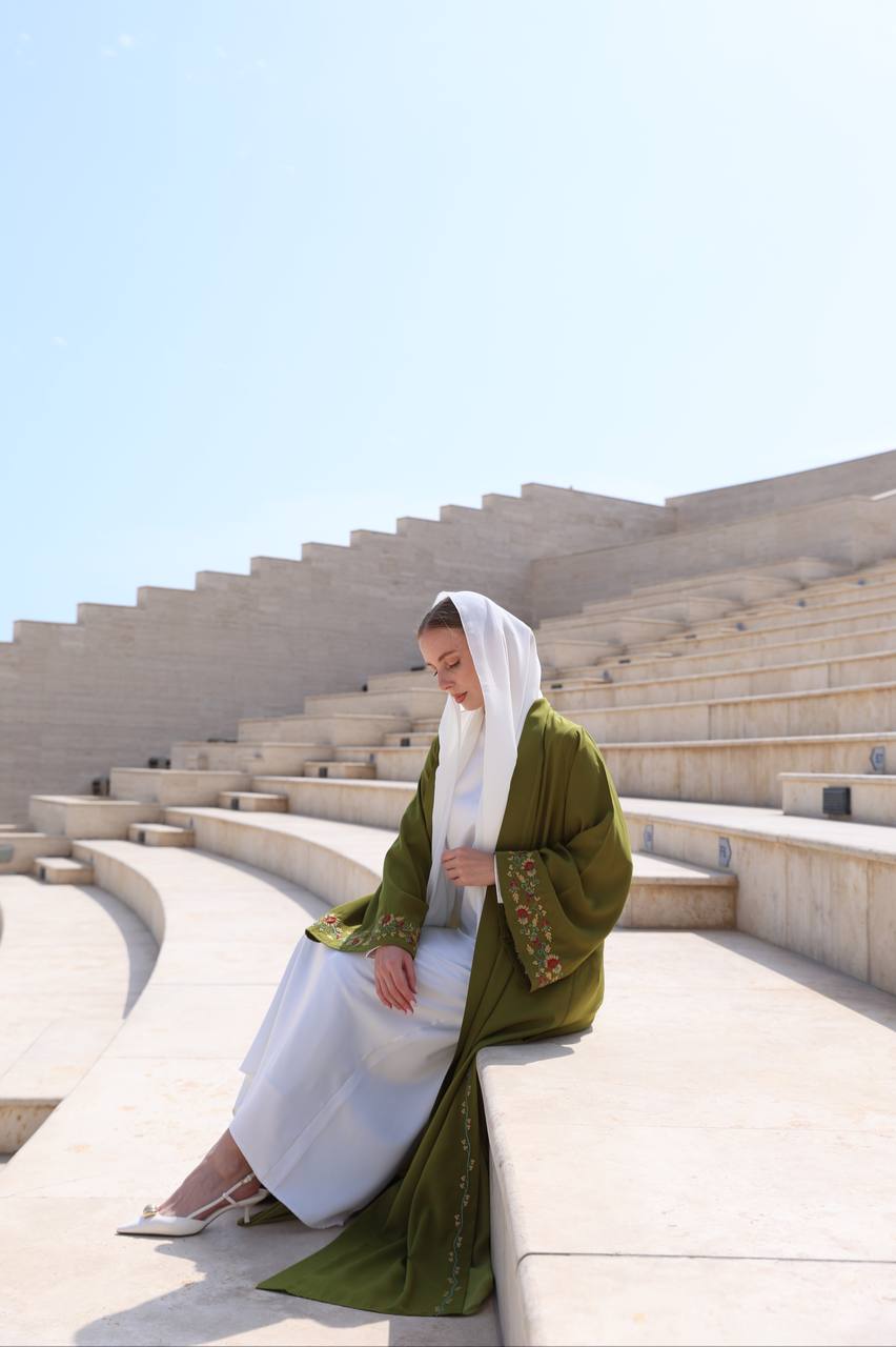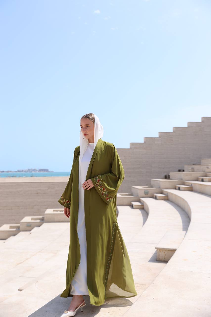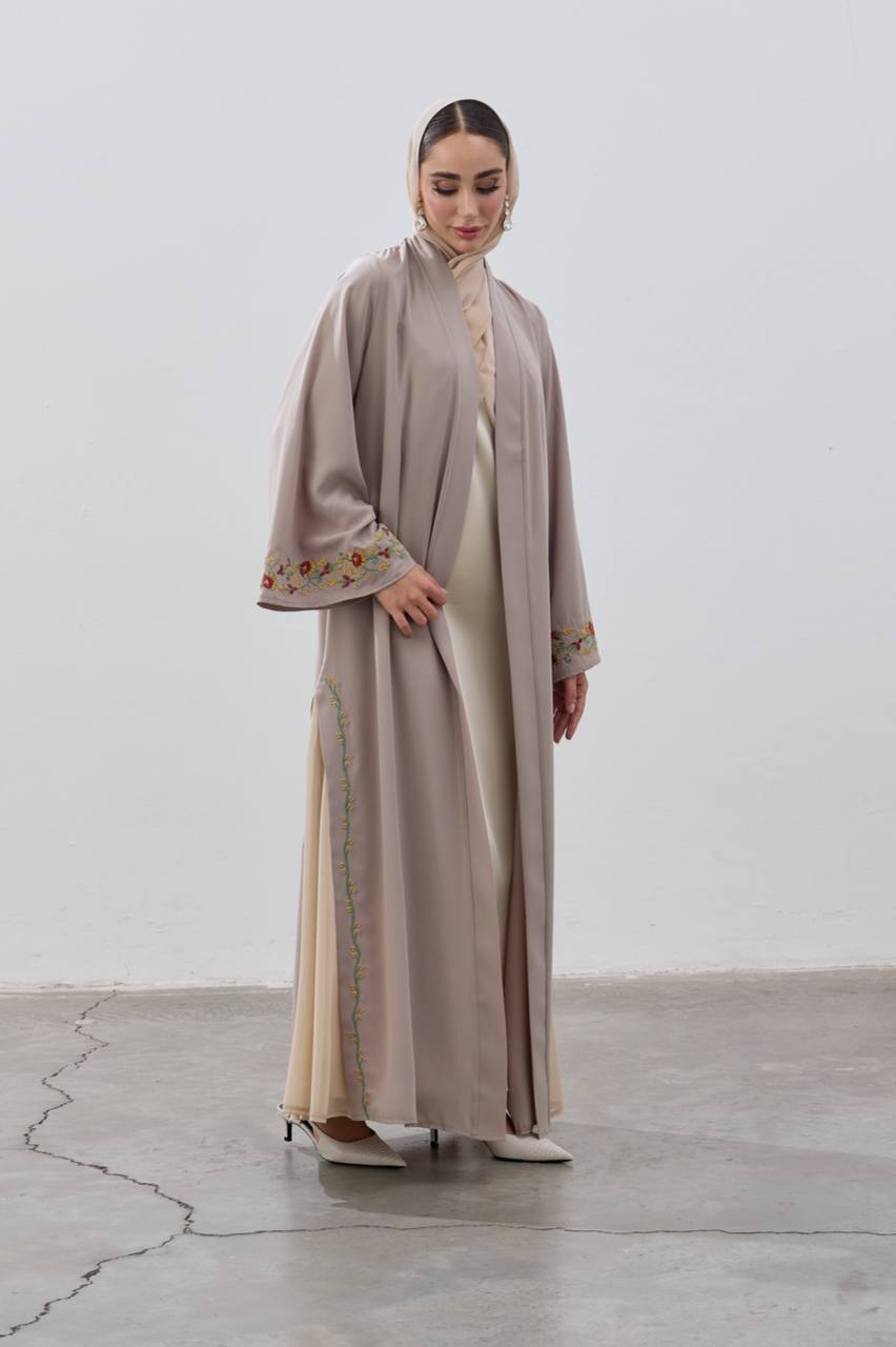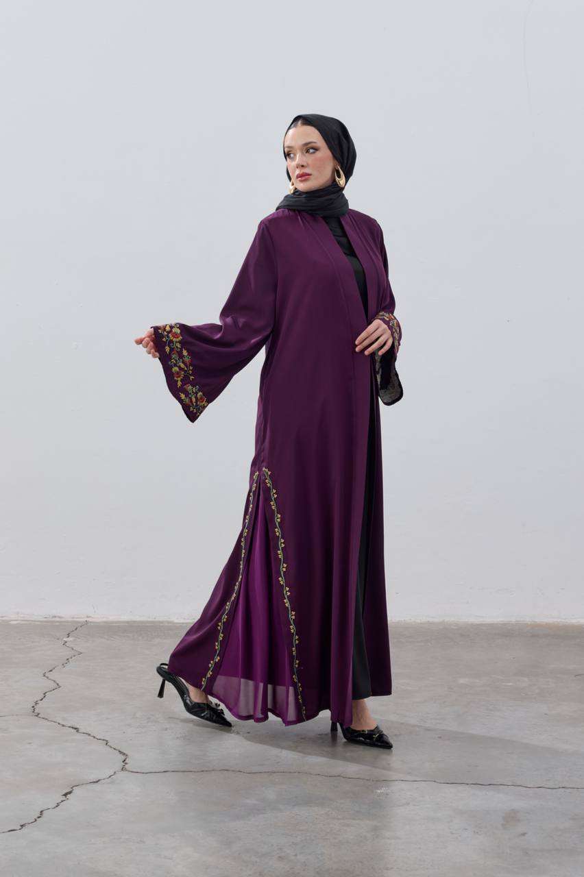 Elevate your elegance with the Yasmin abaya, featuring exquisite floral embroidery on the sleeves and sides that enhances its refined silhouette. Crafted with meticulous attention to every stitch, this limited edition piece offers exceptional quality for those who value artistry and detail in their wardrobe. Perfect for discerning individuals seeking timeless sophistication. One piece open abaya.